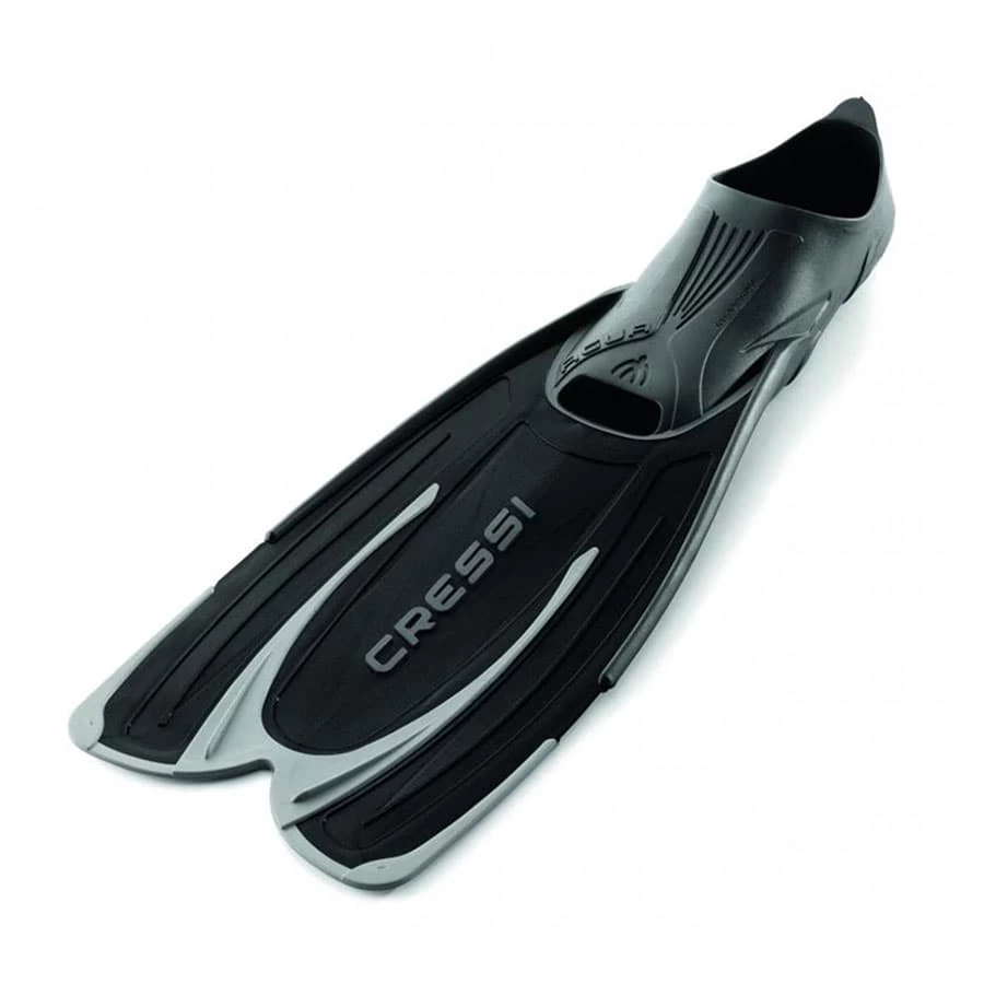 Die Cressi Agua Flossen sind die besten Flossen für Anfänger, Schnorchler und Schwimmer. Sie bestehen aus Polypropylen am Blatt und aus sehr flexiblem thermoplastischem Gummi für die Fußtasche und die Längsrippen. Polypropylen ist ein leichtes und widerstandsfähiges Material, dessen wichtigste dynamische Eigenschaft die schnelle elastische Rückstellung der Flosse ist, was sich in einem flüssigen, wendigen und effizienten Flossenschlag äußert. Die Struktur der Flosse platziert die Fußtasche unter dem Blatt und schützt so den Fuß vor Stößen oder Reibung am Boden und erweitert die Nutzfläche des Blattes über den Rist.