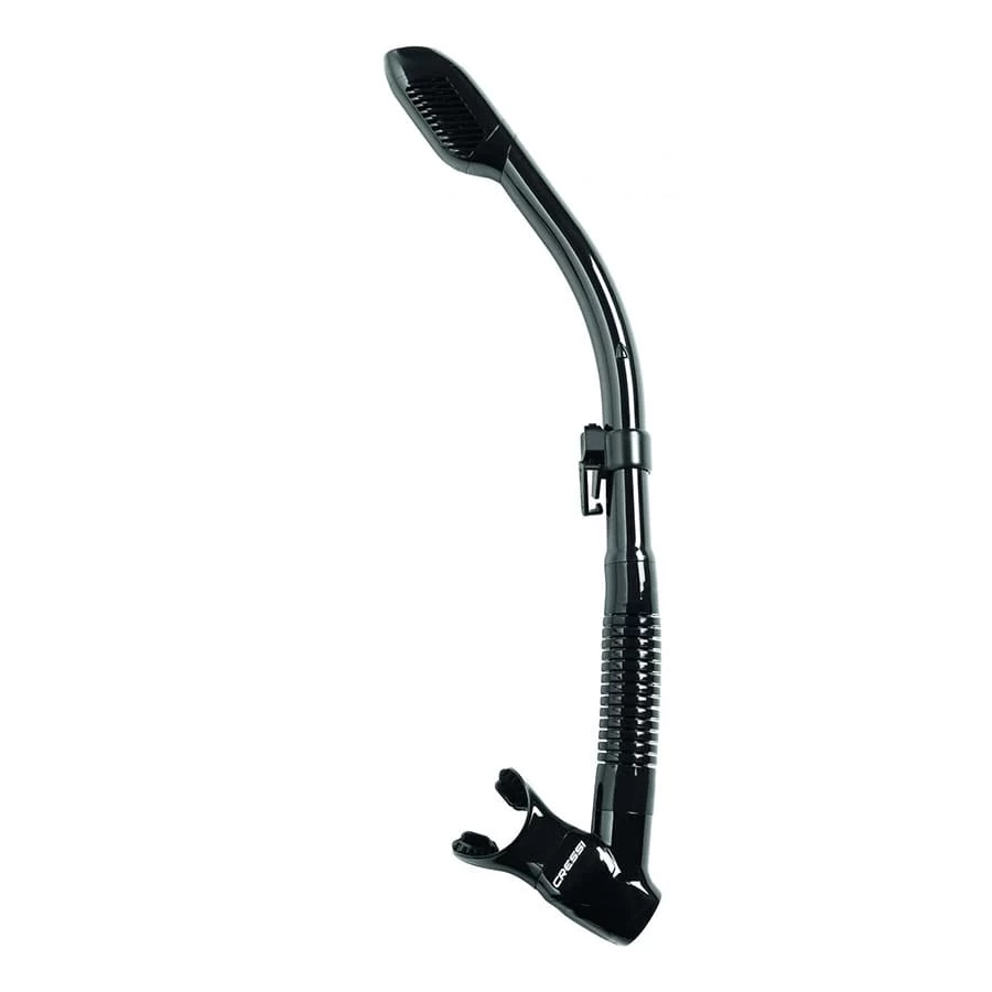 Der Cressi Dry Schnorchel hat oben ein beispielloses Ende, das mit einem speziellen Ventil mit einem 100% Anti-Splash-Bojensystem ausgestattet ist, das das Rohr in dem Moment abdichtet, in dem es untergetaucht ist, und das Eindringen von Wasser verhindert. Das Innenteil hat eine glatte innere Silikonriffelung, die das Mundstück immer richtig positioniert hält und den Atemregler nicht stört, wenn er in den Mund genommen wird. Das Silikon-Mundstück ist außerordentlich anatomisch und baugleich mit dem Atemregler. Ein spezieller Behälter mit elliptischer Entleerungsmembran erleichtert das Ausstoßen von Wasser mit minimalem Aufwand.