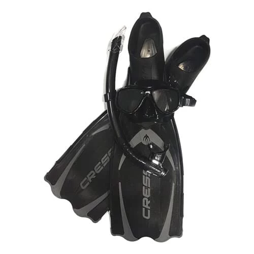 Das Set Cressi Pluma besteht aus einer Bi-Kristall-Maske und einer mittelbreiten Gesichtsmaske aus Silikon. Die Schnallen sind in den Rahmen integriert und sehr widerstandsfähig. Der Schlauch ist flexibel und hat eine Silikondüse und ein Ventil. Außerdem verfügt er über einen oberen Spritzschutz. Die Flossen haben eine hochflexible, oben geschlossene Fußtasche aus Elastomer mit einer unteren Öffnung.