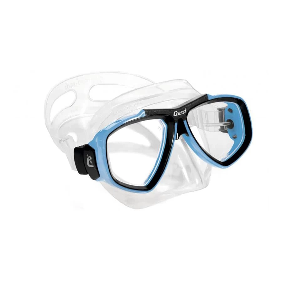 Die Cressi Focus Tauchmaske mit klaren Gläsern ist leicht und kompakt, hat eine bequeme Gesichtsmaske aus Silikon mit hervorragender Passform und hohem Komfort auch nach längerem Gebrauch. Seine moderaten Abmessungen, die abgerundeten Ecken und das unübertroffene Verhältnis zwischen Innenvolumen und Sichtbarkeit machen ihn ideal für das Tauchen, Speerfischen, Freitauchen und Schnorcheln. Focus ist mit einer neuen, kleinen, wippenden Schnalle ausgestattet, die sich auch mit Maske und Neoprenhandschuhen sehr leicht einstellen lässt. Das besondere Design der Gläser, das von dem legendären Modell Cressi Super-Lince abgeleitet ist, ist optimal für einen vollständigen Blickwinkel in alle Richtungen. Das symmetrische Design der Gläser sowie die einfache Montage und Demontage der Gläser machen sie zu einem idealen Modell für die Verwendung als optische Maske, die mit Korrekturgläsern für Kurzsichtigkeit erhältlich ist.