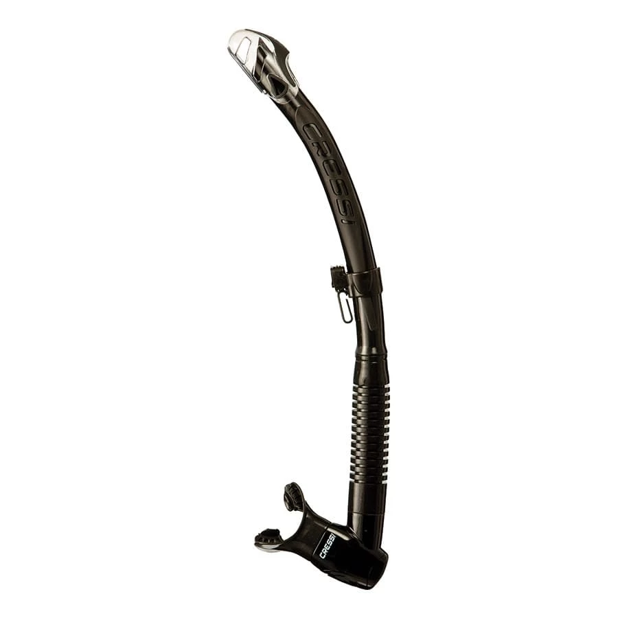 Der Schnorchel Cressi Corfu ist mit einem Spritzschutz ausgestattet, der das versehentliche Eindringen von Wasser bei Wellengang verhindert. Die Konstruktion ist so ausgelegt, dass der Luftstrom nicht beeinträchtigt wird. Der untere Teil hat eine glatte, geriffelte Innenseite aus Silikon, die dafür sorgt, dass das Mundstück immer richtig positioniert ist und den Atemregler nicht behindert, wenn er in den Mund genommen wird.